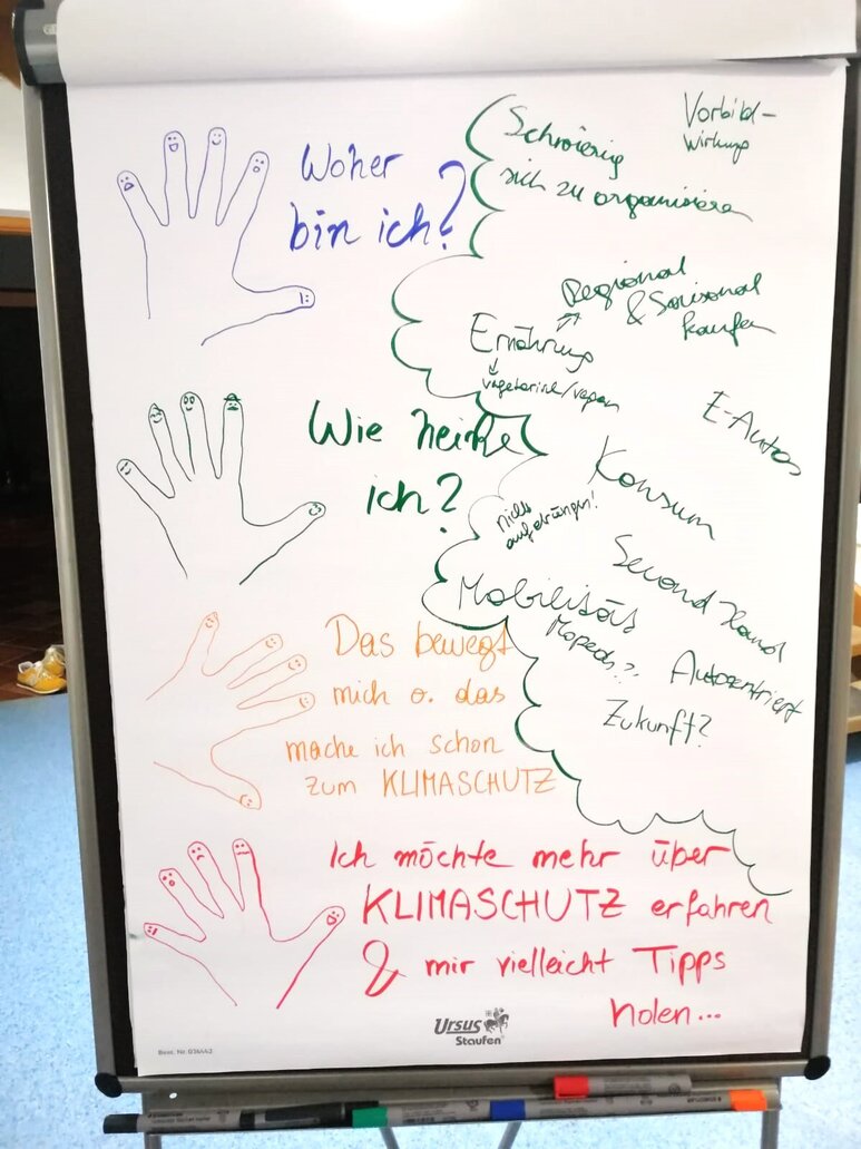 Es wurde viel darüber gesprochen, was Jugendliche beschäftigt…also über Ernährung (regionale, saisonale Produkte, vegetarisch/vegan), Kleidung (Second Hand, Fair Fashion), Mobilität (selbstständiges Mobil Sein, die Beliebtheit fossiler Mopeds, die Ausrichtung aller Dinge auf Autos), die Vorbildwirkung der Erwachsenen, die Gefahr von fossilen Energien/Atomenergie und über Trends (und was damit verbunden ist, z.B. Konsum). Da Vertreter:innen von Klimaschutzbewegungen beim Stammtisch waren, quatschten wir auch über „Extinction Rebellion“ und „Fridays for Future“ und Klimaaktivismus im Allgemeinen.